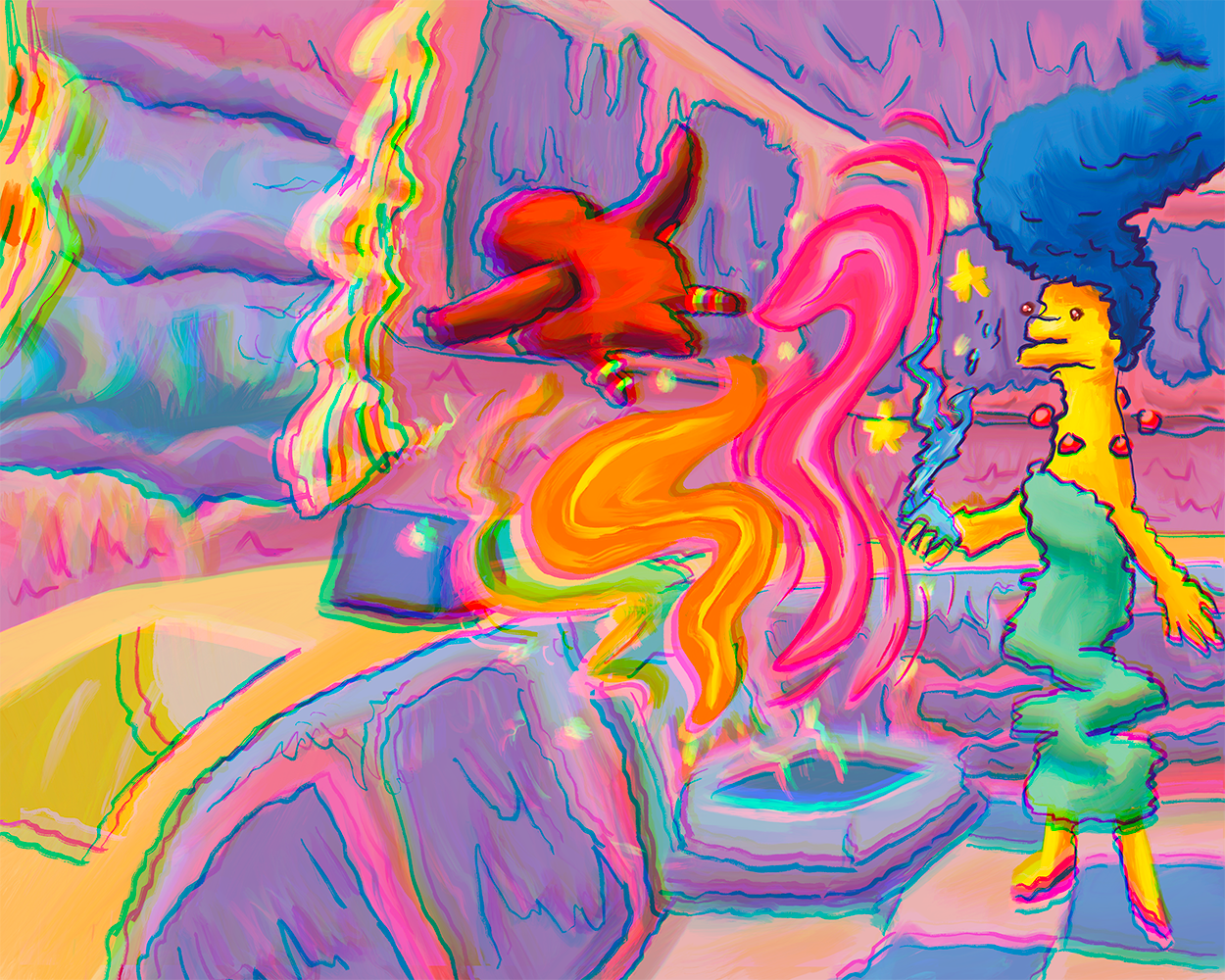Eye on Springfield was a continuation of this idea, of how living in a sitcom is an existential nightmare. Print copy.